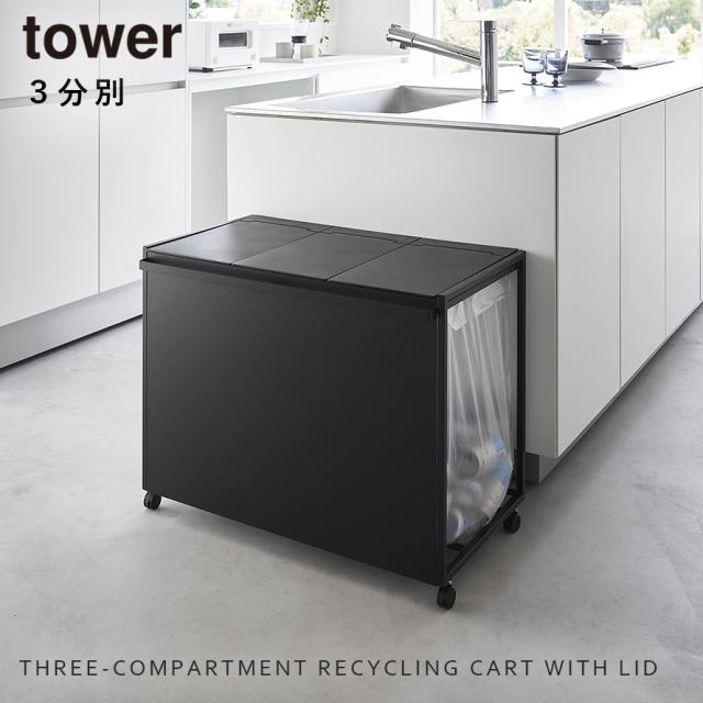 ゴミ箱 ワゴン 45l キッチン 分別 キャスター ふた付き 目隠し tower タワー 山崎実業 ペットボトル 缶 蓋付き目隠し分別ダストワゴン タワー45L 3分別 メーカー直送