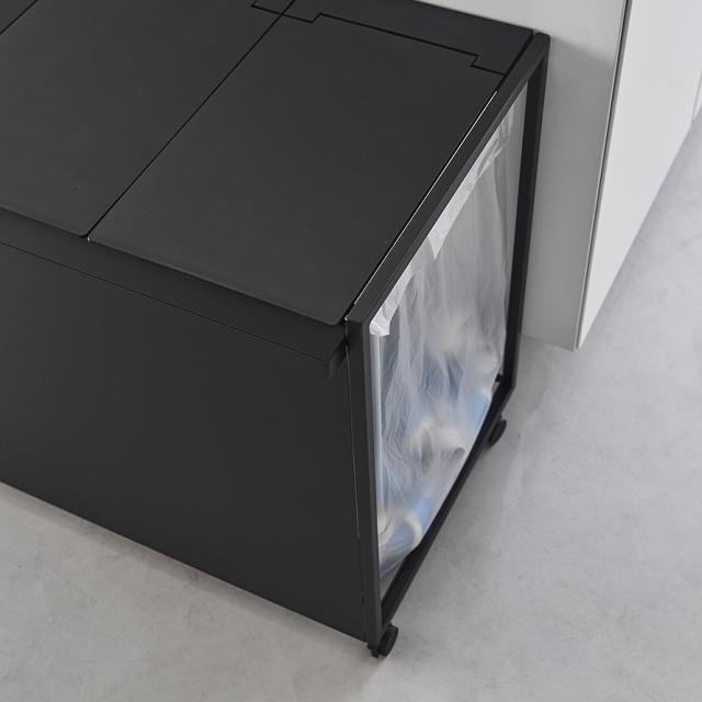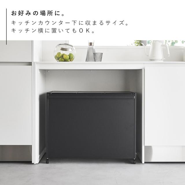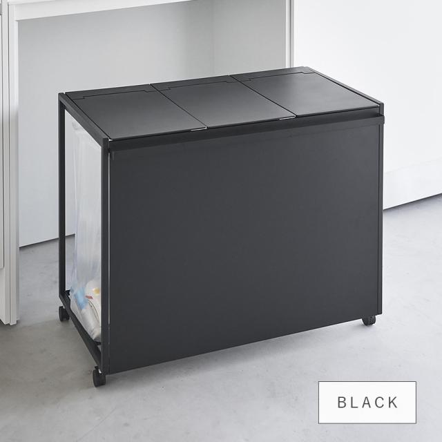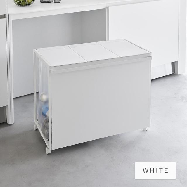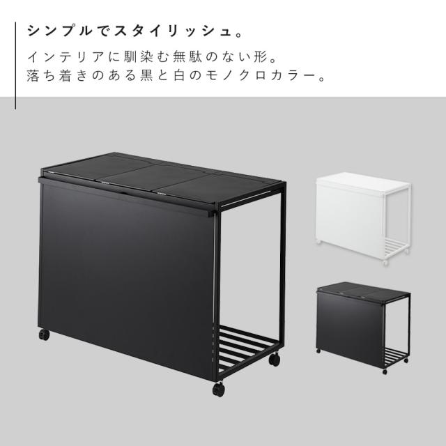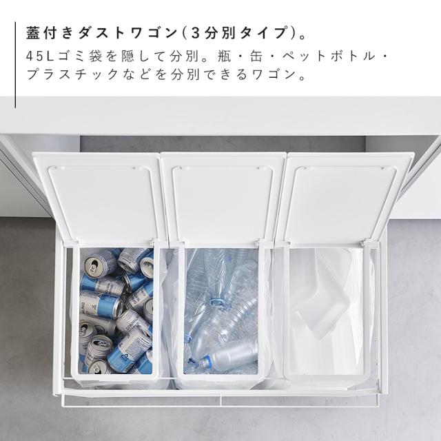 45Lのゴミ袋を隠して分別できるスタイリッシュな蓋付き分別ダストワゴン 3分別タイプ。