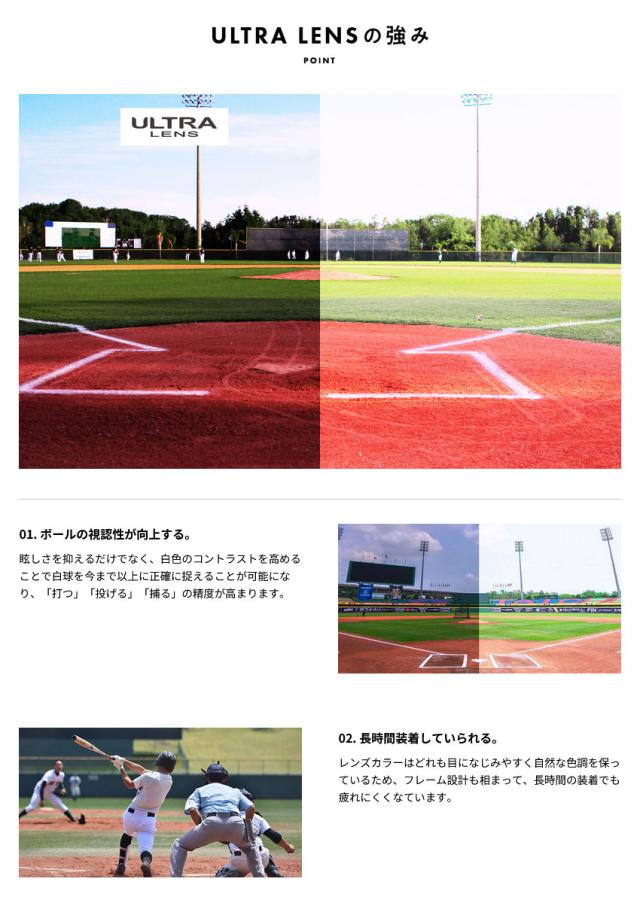 眩しさを抑えるだけでなく、白色のコントラストを高めることで白球を今まで以上に正確に捉えることが可能になり、「打つ」「投げる」「捕る」の精度が高まります。