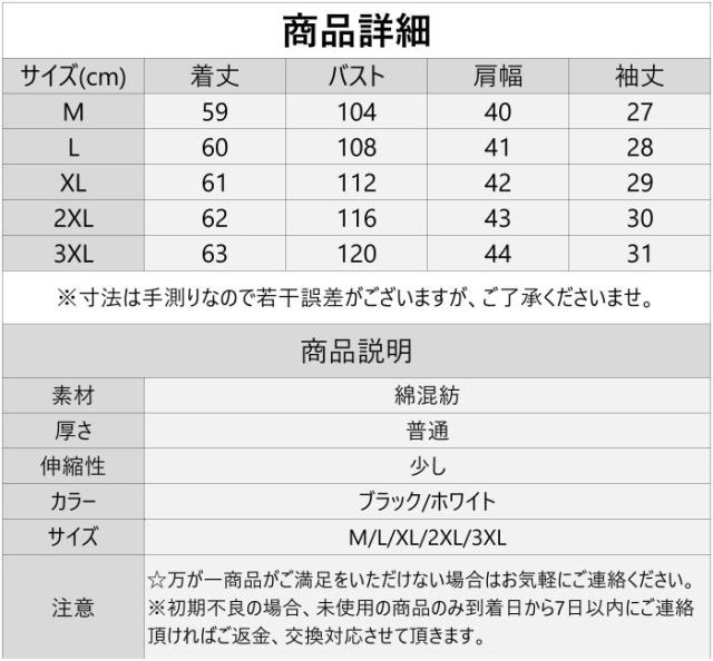 ▼サイズ:M/L/XL/2XL/3XL(単位:CM)