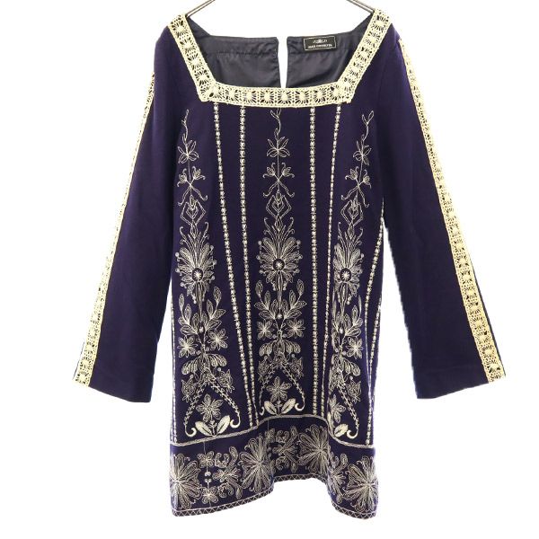 グレースコンチネンタル 刺繍 長袖 ワンピース 36 ホワイト×ネイビー GRACE CONTINENTAL チュニック レディース