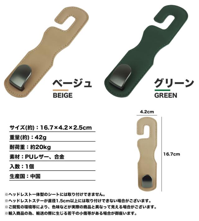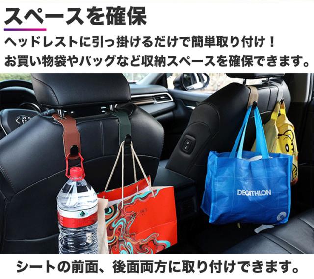 車用 ヘッドレストフック フック 荷物 簡単取付 シートフック ヘッドレスト 収納 車内収納 荷物掛け PUレザー 汎用 吊り下げフック