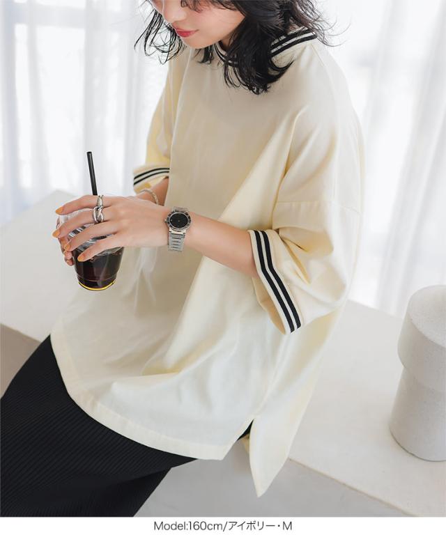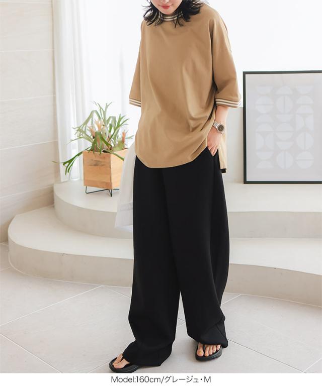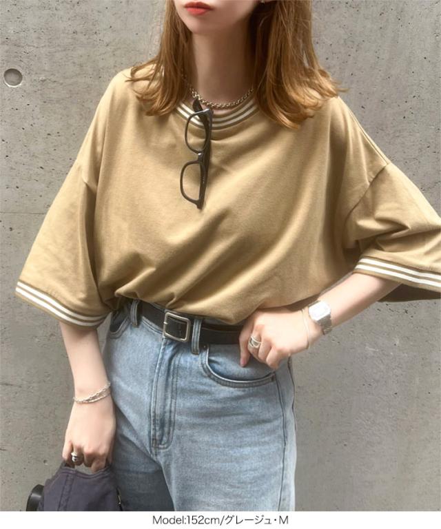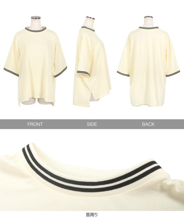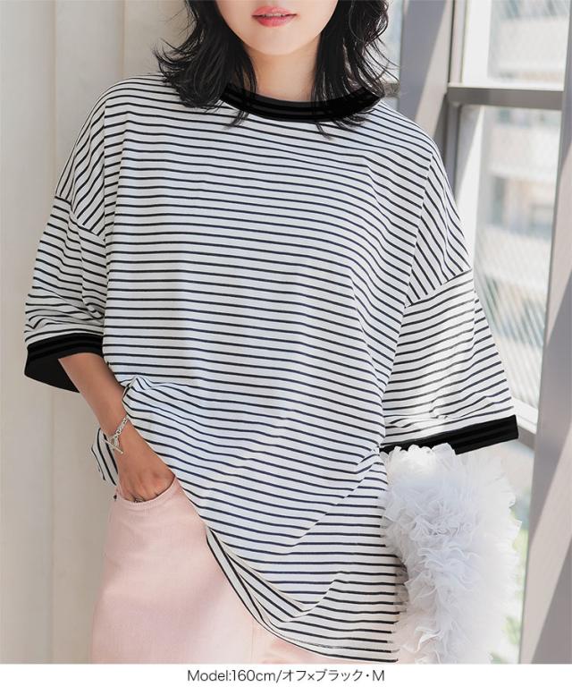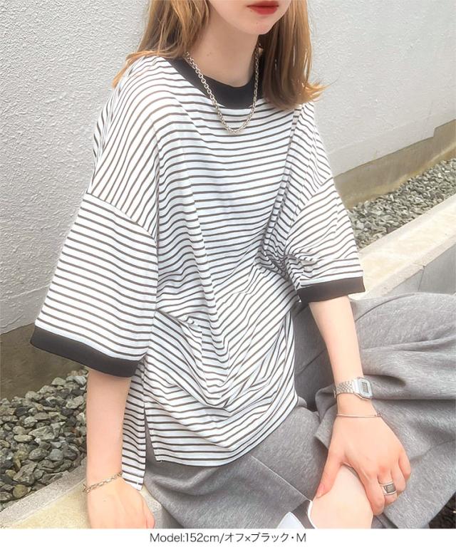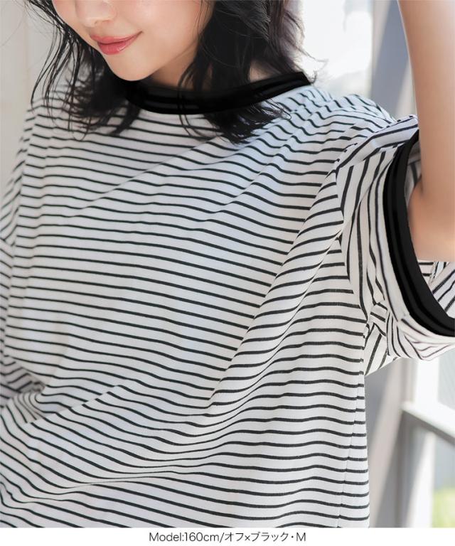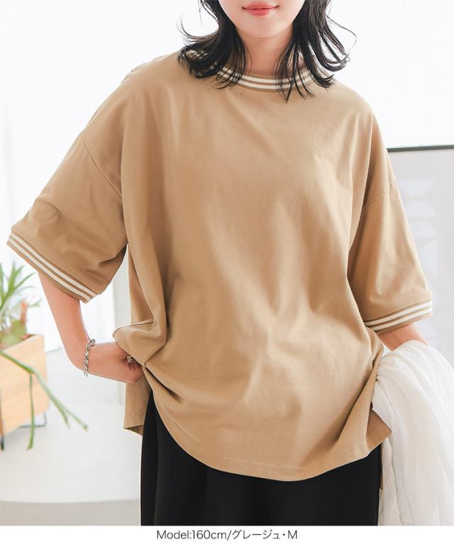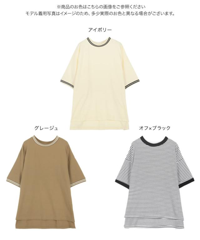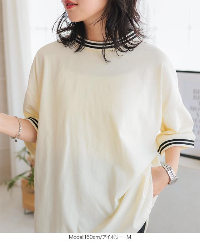 春新作 リンガーTシャツ C7117 入荷済 レディース 20代 30代 40代 Tシャツ ティーシャツ チュニック リンガーティー ボーダー リブ ビッグ ゆったり スリット フリー バイカラー