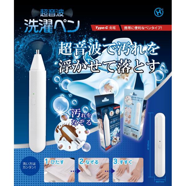超音波で汚れを落とす!小さな泡で汚れを飛ばす!携帯に便利なペンタイプ!