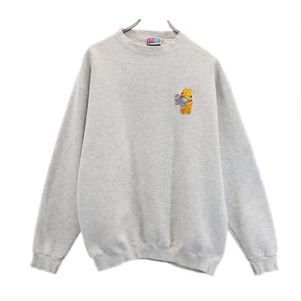 TSi USA製 プーさんデザイン刺繍 長袖 スウェット トレーナー L グレー TSi メンズ