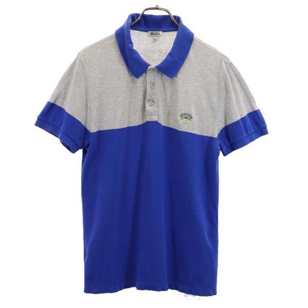 ケンゾー バイカラー 半袖 ポロシャツ M グレー×ブルー KENZO 鹿の子 メンズ