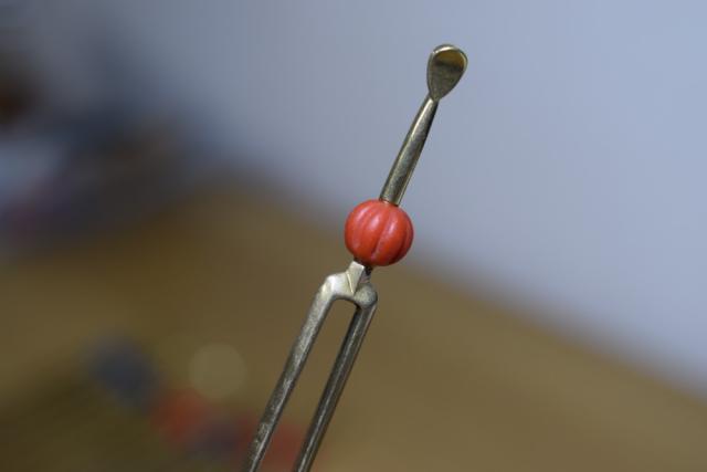 KZ4-25 珊瑚珠色 簪 一点物 小玉 七宝るり玉 とんぼ玉 七宝瑠璃玉 昭和風 二本軸 定番タイプ かんざし