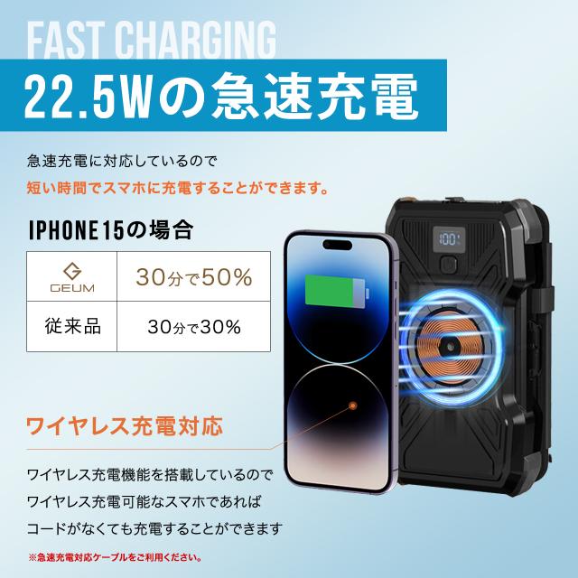 22.5Wの急速充電:短い時間でスマホに充電することが可能です。