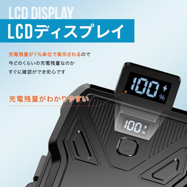 LCDディスプレイ:充電残量が一目でわかります。1%単位で表示されるので今どのくらいの充電残量なのか確認ができて安心です。