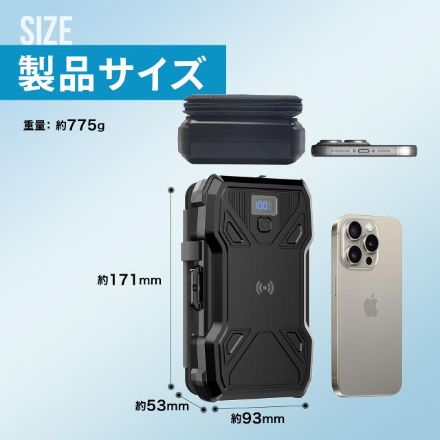 20000mAhの大容量バッテリー:iPhone15に約4回、Galaxy S23 Ultraに約3回、iPad miniに約2回、