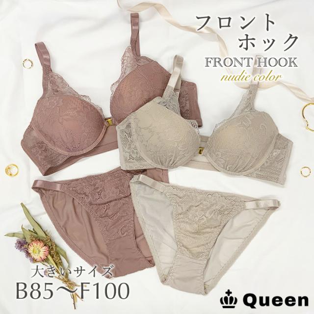 ★☆大きいサイズ フロントホックブラジャー ショーツセット ヌーディーカラー レディース 下着 グラマーサイズ ベージュ ブラウン☆★