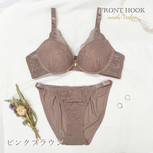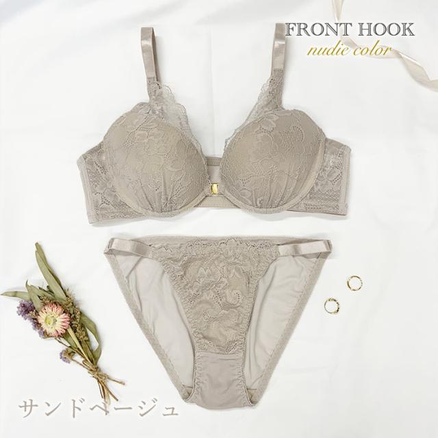 ヌーディーカラーフロントホックブラショーツセット(BC85-95/D85-100/EF80-100)