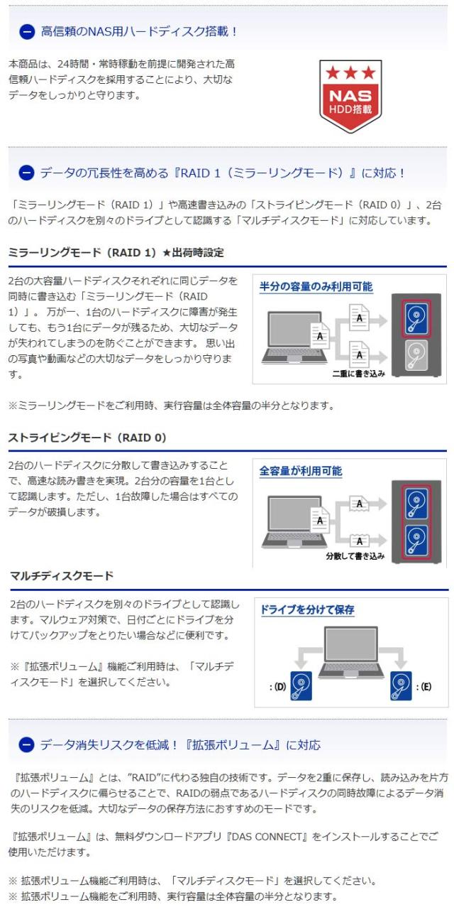 ※拡張ボリュームのご利用には、無償アプリ「DAS CONNECT」のインストールが必要です。また、実効容量は全体容量の半分となります。