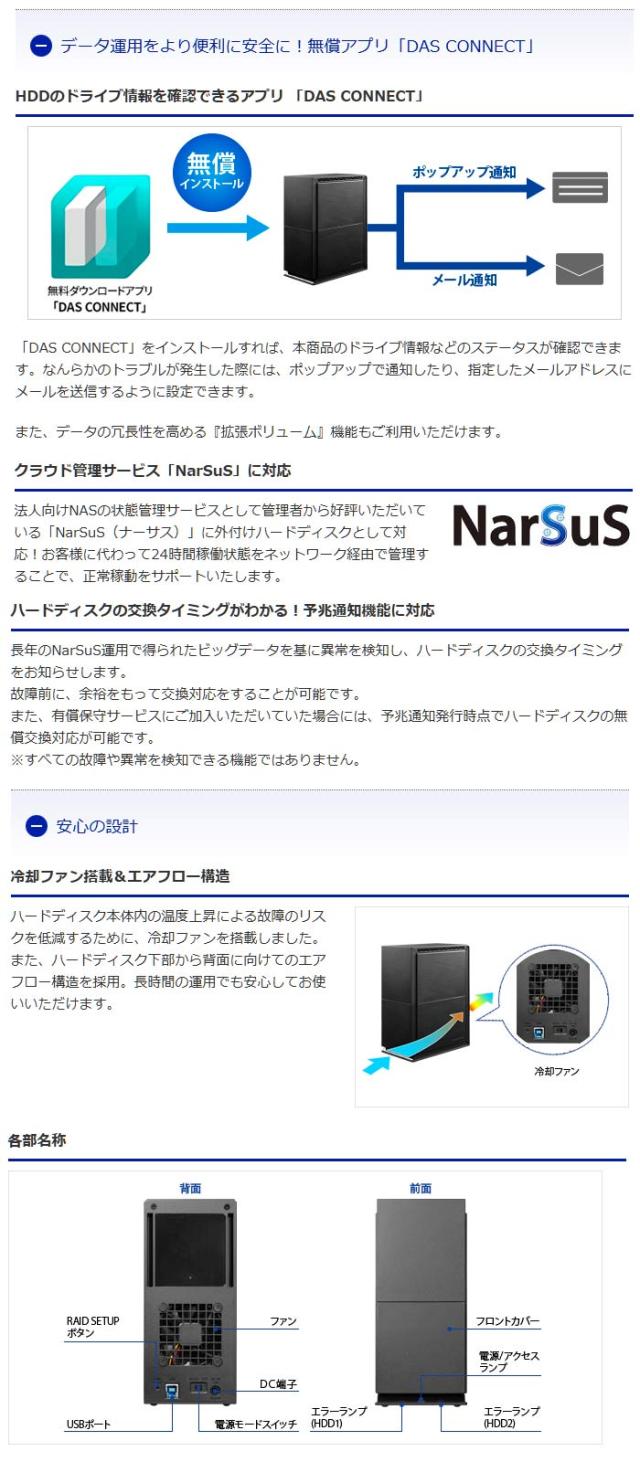 | 法人向け 5年保証 USB 5Gbps対応 2ドライブ搭載(RAID0/1対応)外付けHDD 6TB HDW-UTN6 スペック情報 | |