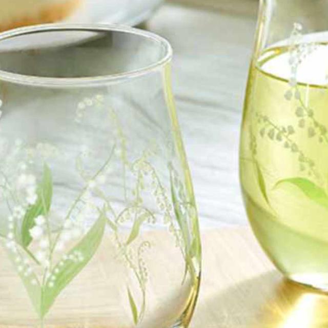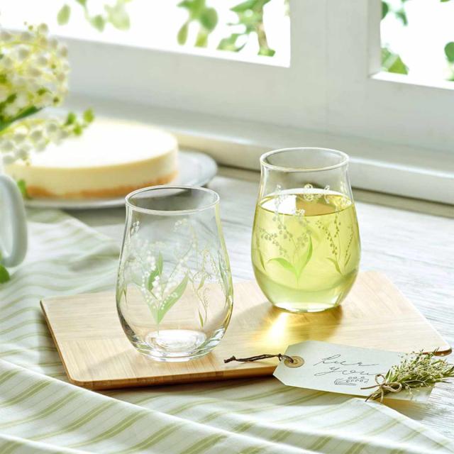 すずらんのお花をまとったグラスのペアセットです。春の訪れと共に咲き始めるすずらんの花は、西洋で「幸せのシンボル」とされています。容量は400mlで、ティータイムにぴったりなサイズです。
