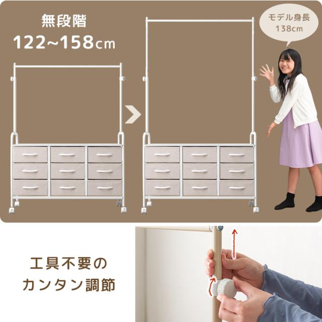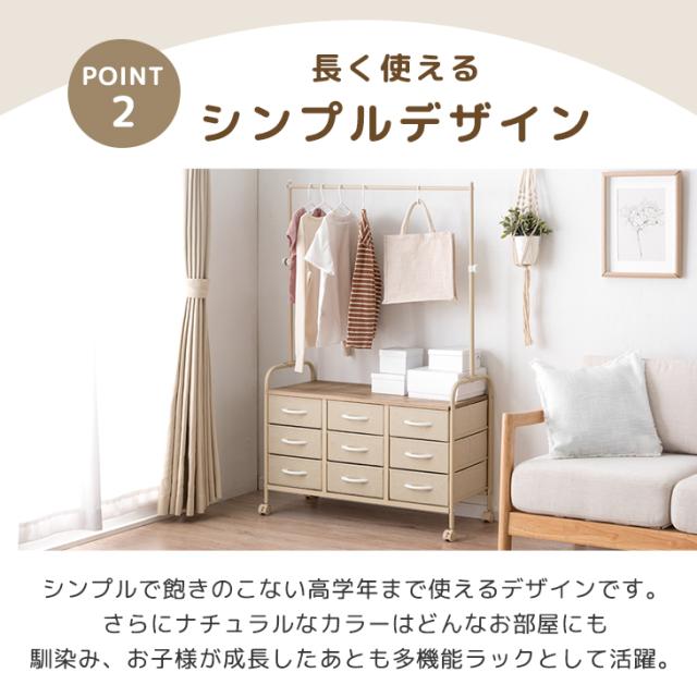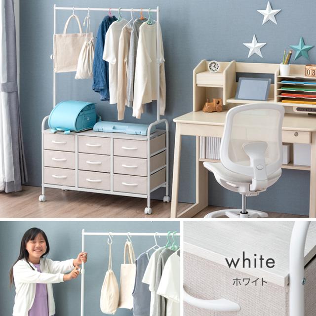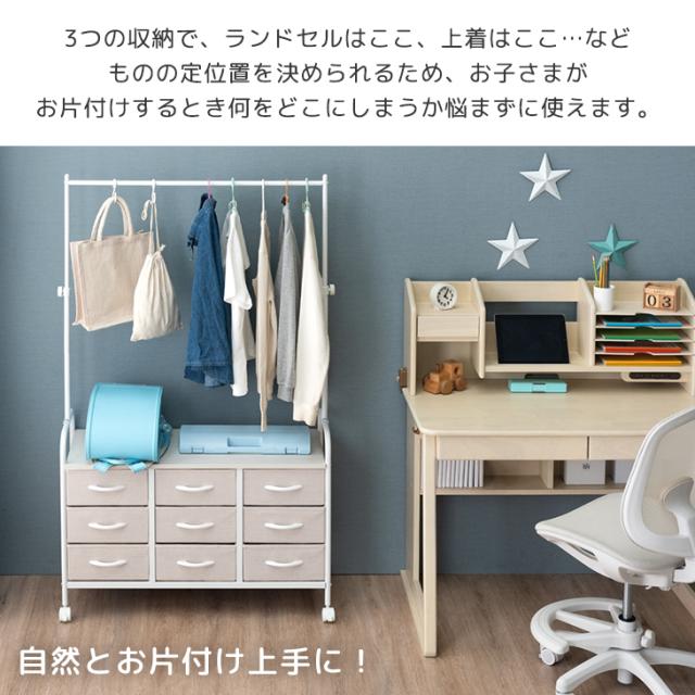 ランドセルラック キャスター付 ハンガーラック 高さ調整 ファブリックチェスト ランドセル 収納 ラック 棚 お片付け キャスター おしゃれ 可愛い ホワイト 白 ベージュ 男の子 女の子