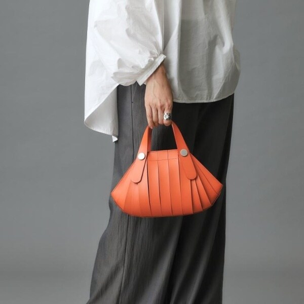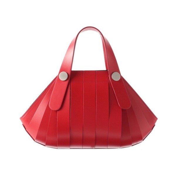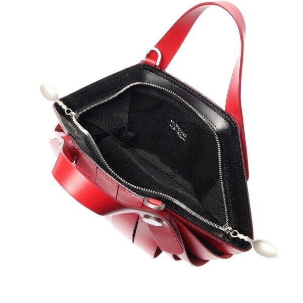 骨組みを表に出したような特徴的なデザインは、内袋をベルトで包んだ構造により、入れる物によってフォルムが変化します。