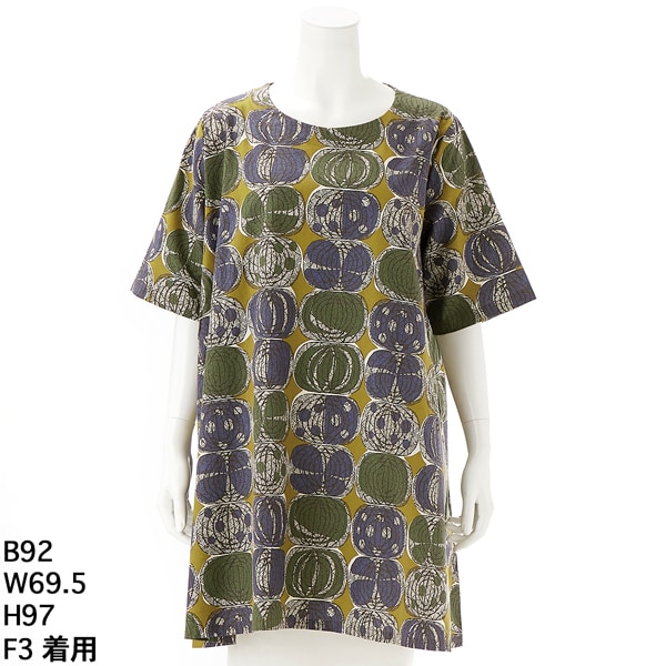 クインティ(QUINTY)/【大きいサイズレディース】綿麻混シーチングアフリカンスタイルオニオン柄チュニックドレス【日本製】
