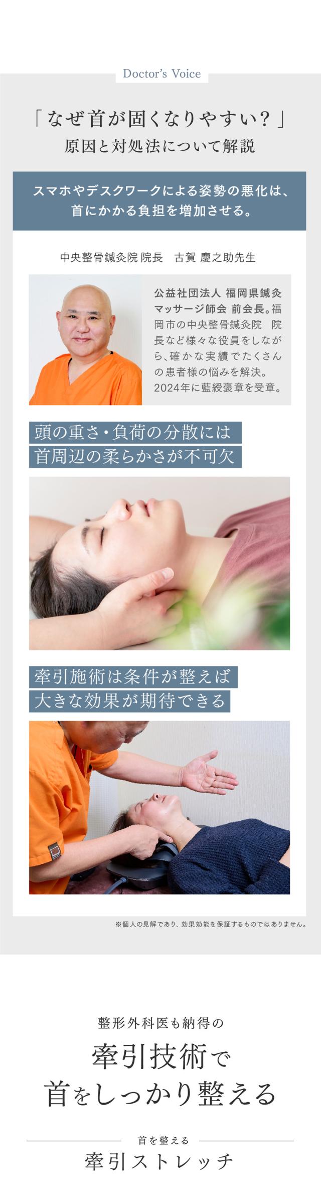 "牽引"で首への負担を軽減し、首まわりをラクにします。