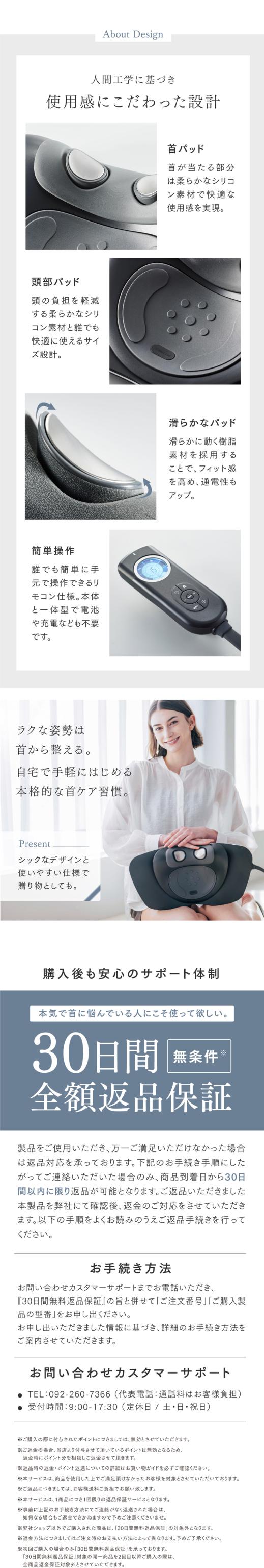 首まわりを温めることで首の緊張をほぐします。自重でより深くまで熱が伝わるので、首を温めながらリフレッシュできます。温熱単独でも使用できます。