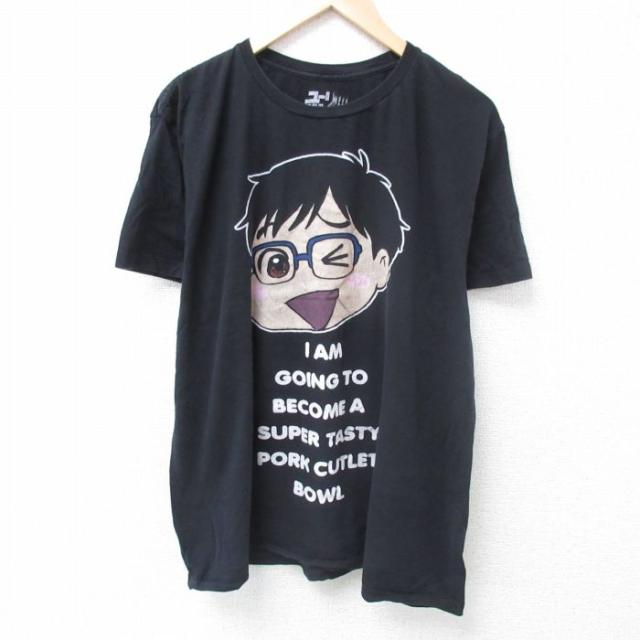 古着 半袖 Tシャツ メンズ アニメ ユーリ!!!onICE 勝生勇利 大きいサイズ コットン クルーネック 黒 ブラック spe XLサイズ 中 中古 古着
