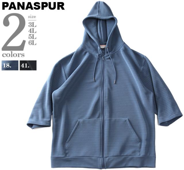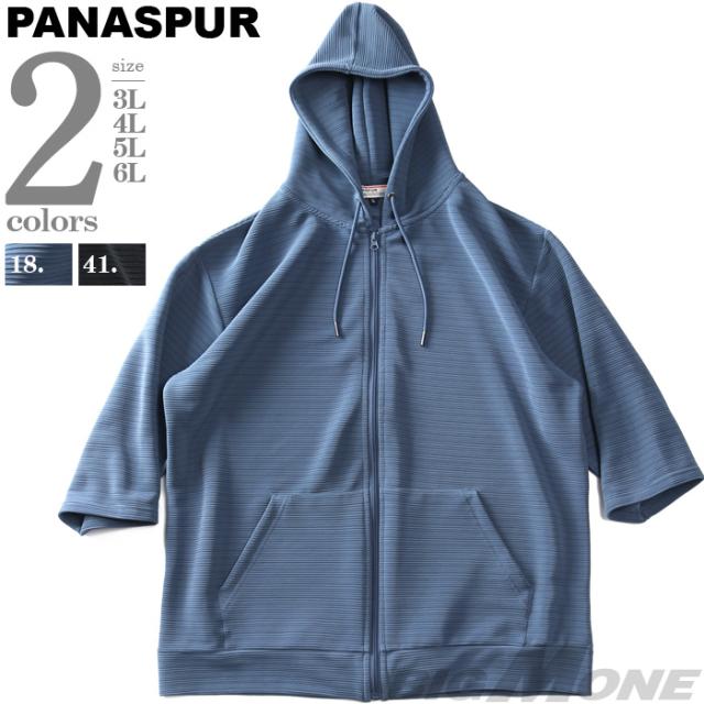 大きいサイズ メンズ PANASPUR パナシュプール リップルボーダー フルジップ 半袖 パーカー 4403-745z