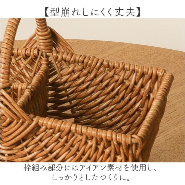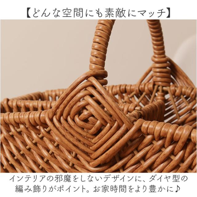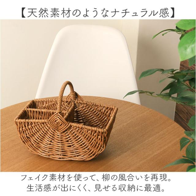 | 商品説明 | 【見た目にも機能性にもこだわりを】 ・おしゃれに置けて使い勝手も抜群。「Towc バルトフェイクワンハンドルバスケット」。 【天然素材のようなナチュラル感】 ・フェイク素材を使って、柳の風合いを再現。生活感が出にくく、見せる収納に最適。 【型崩れしにくく丈夫】 ・枠組み部分にはアイアン素材を使用し、しっかりとしたつくりに。 【水洗いできてお手入れラクラク】 ・汚れやホコリなどが気になったら、拭き取ったり水洗いOK!お手入れしやすく、衛生面も安心。 【デスクやテーブル周りがすっきり】 ・仕切りを付けた3スペース仕様。散らかりがちなリモコンやペン類など、細かいものを整理整頓☆ 【洗面などの水回りでも大活躍】 ・天然素材のようにカビや虫、湿気を気にする心配なし。メイク道具の収納にも。 【お菓子などの食材もすっきり】 ・キッチンに置いて、小さなお菓子やふりかけなどを入れてもOK。 【置き場所を選ばずコンパクト】 ・ちょっとしたスペースに置きやすいサイズ感。オフィスなどでも重宝。 【サッと手に取れて移動もスムーズ】 ・お部屋間の移動もしやすい、ワンハンドルデザイン。見た目もスタイリッシュ。 【どんな空間にも素敵にマッチ】 ・インテリアの邪魔をしないデザインに、ダイヤ型の編み飾りがポイント。お家時間をより豊かに♪ |