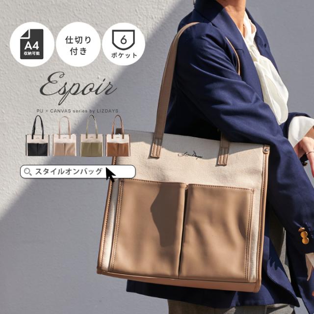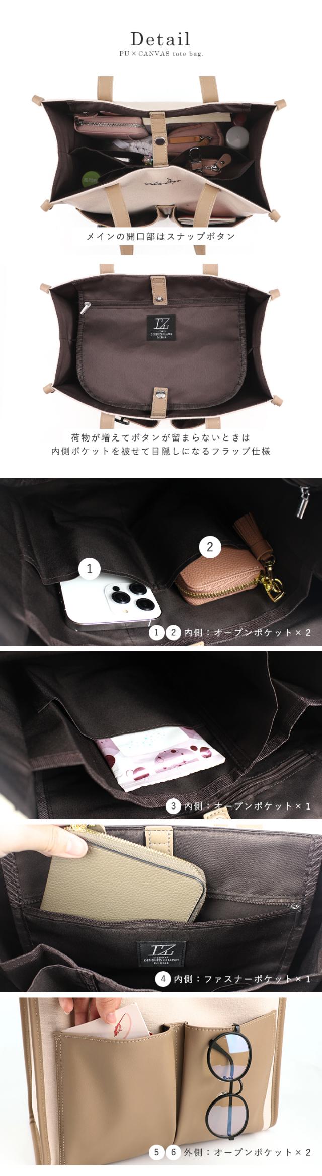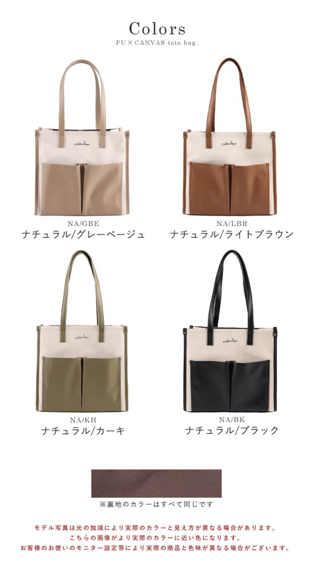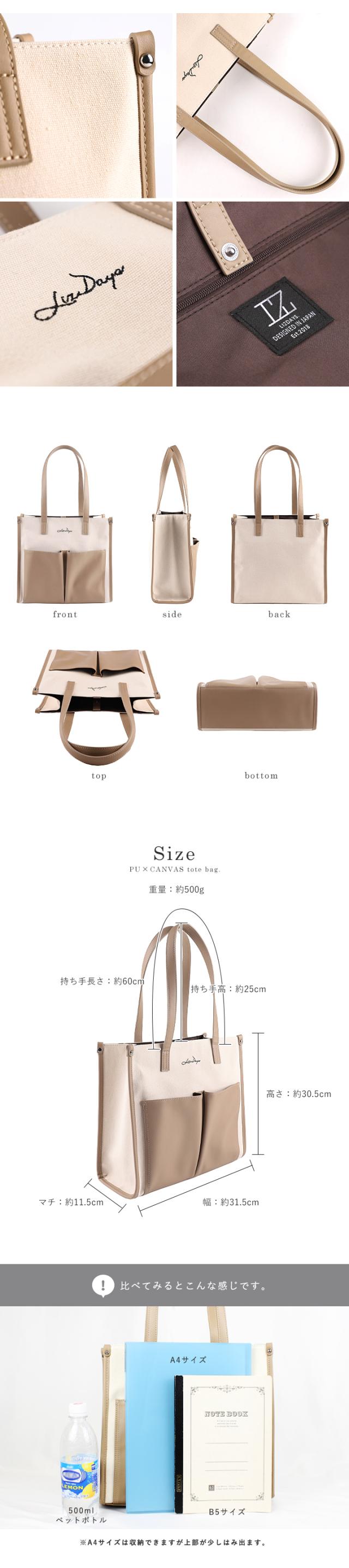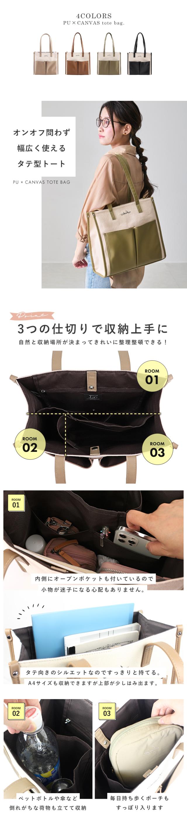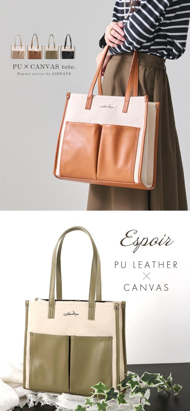 トートバッグ レディース キャンバス 帆布 PU 異素材 大容量 通勤 通学 A4 軽量 自立 バイカラー モダン エレガント フォーマル きれいめ オシャレ かわいい ナチュラル LIZDAYS リズデイズ【lz-71616】