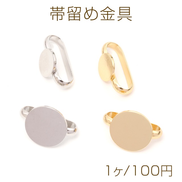 帯留め金具 ラウンド型 平台座 帯留めパーツ 帯留め台座 オビドメ金具 和装小物パーツ 丸型 銅製(1ヶ)