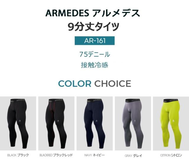 ARMEDES アルメデス 接触冷感 コンプレッション タイツ メンズ 9分丈 前閉じ レギンス スパッツ UVカット 紫外線対策 吸汗速乾 通気性 ストレッチ スポーツインナー 加圧 ゴルフ 野球 ランニング 作業着 夏用 涼しい ひんやり 下着 肌着 AR161