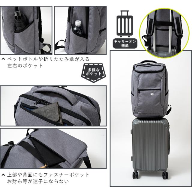 ノートパソコンやタブレットを収納できるデバイスポケットをはじめ、さまざまなポケットにスマートに荷物を収納でき、