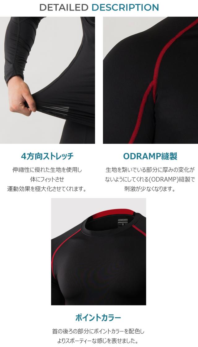 送料無料 ARMEDES アルメデス コンプレッション インナー アンダーウェア Tシャツ 接触冷感 テックフィット 長袖 丸首 日常 トレーニングウェア ランニング フィットネス メンズ M-2XL 全7色 オールシーズン AR56