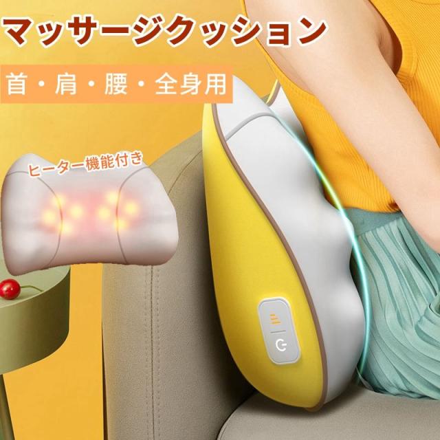 マッサージクッション 寝ながら マッサージ機 電動 充電式 コンパクト 小型 電熱 ヒーター付き リラックス 車用 首 肩 腰 頸椎 背中 太もも 肩こり ストレス解消 職場用 父の日 母の日 敬老の日