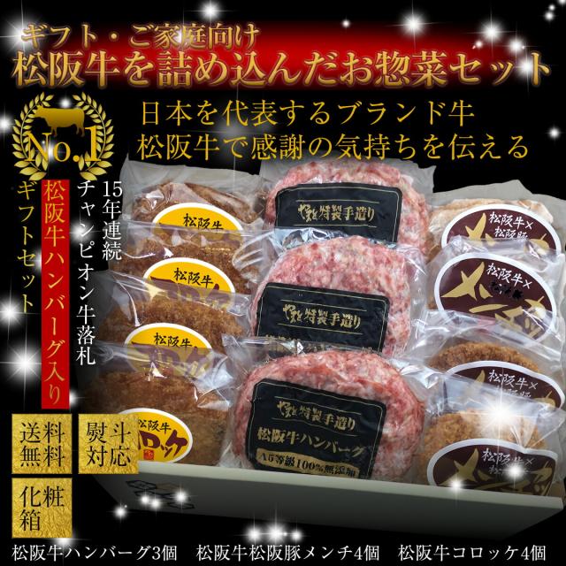 肉 松坂牛 100% ハンバーグ 入り お惣菜 デラックス B ハンバーグ x3 メンチ x4 コロッケ x4の3点 セット