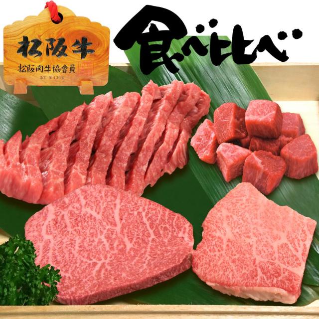松坂牛 食べ比べ GOLD 4部位 ダイヤ ・ イチボ ・ トモサン ・ 角切り 4人前 セット送料無料 ステーキ肉 肉 食べ物 出産祝い 結婚祝い プレゼント グルメ お祝い 贈り物 松坂牛 誕生日 内祝い 肉