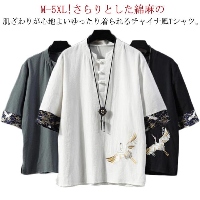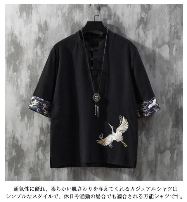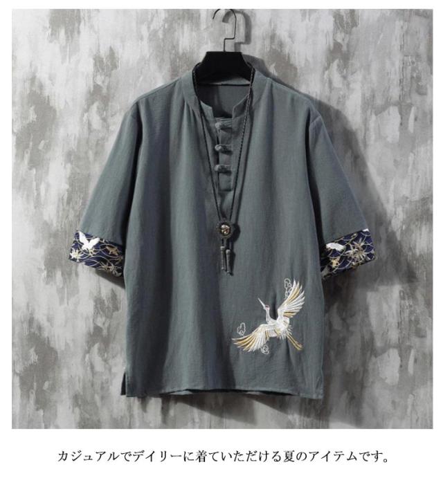 チャイナ服 シャツ チャイナシャツ メンズ 薄手 半袖シャツ チャイナシャツ 夏 刺繍 綿麻 リネンシャツ カジュアルシャツ スタンドカラー チャイナボタン チャイナ風 カジュアル 春夏 男性用 夏物 太極拳服 普段着 唐装 漢服 演奏会 演出服 春 夏 父の日 送料無料