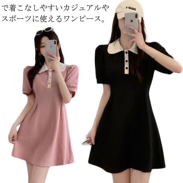 ポロワンピース レディース ポロシャツ 無地 ワンピース 涼しい Aラインスカート ゴルフウェア ポロ襟 お洒落 ポロシャツワンピース ロングTシャツ シンプル 爽やか カジュアル スポーツ 夏 テニスウェア 運動着 S M L XL 2XL 送料無料