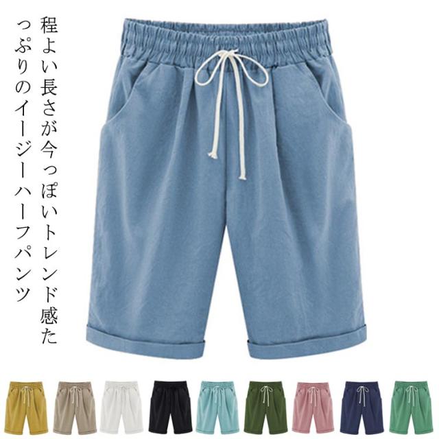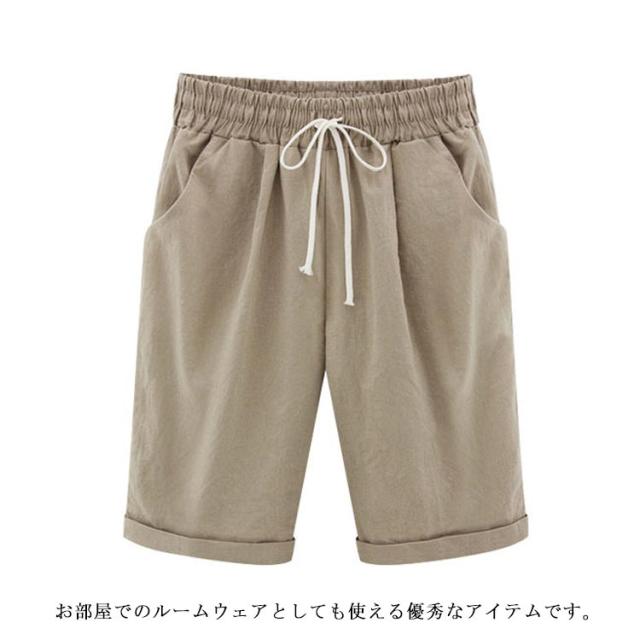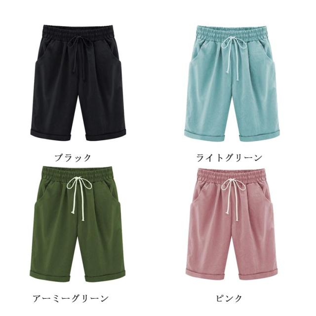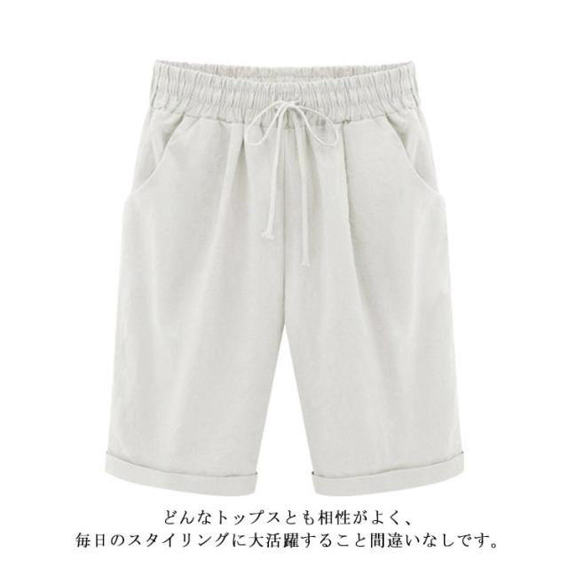膝丈ストレートパンツ ハーフパンツ レディース ショート丈 シンプル 大きいサイズ ゆったり 体型カバー 大きいサイズ ショートパンツ 短パン 綿 スウェットパンツ ウエストゴム 五分丈 カジュアル 着痩せ 部屋着 お出かけ 無地 送料無料