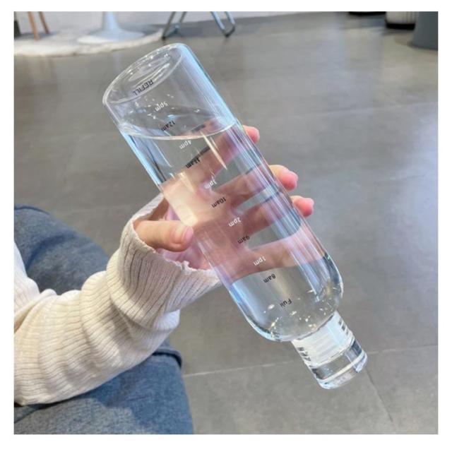 耐熱ガラス 水筒 クリア 700ML 500ML 大容量 男女兼用 大人 耐熱耐冷 水分補給 ガラス クリアボトル 旅行 水筒 子供 ウォーターボトル 運動用 直飲み ジム アウトドア お洒落 ウォーターボトル 通勤 通学 漏れ防止 ランニング タイムマーカー シンプル ギフト 送料無料