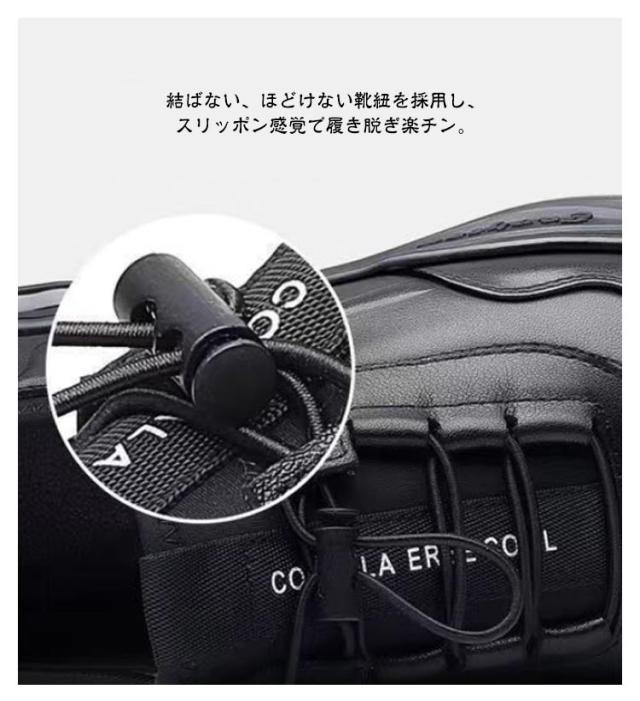 | スーツとのコーデも違和感なくおしゃれなビジネススニーカー。 履き口は柔らかい伸縮性の素材を採用し、痛くならず、足あたりの柔らかさは抜群。 結ばない、ほどけない靴紐を採用し、スリッポン感覚で履き脱ぎ楽チン。 衝撃をしっかり吸収するクッション入りソール、歩行時の足への負担を軽減。 柔軟性抜群の底、まるでスニーカーの様な履き心地。 軽量で通気性に優れた素材を使用しているため、一日中快適な履き心地を保ちます。 通勤やビジネスシーンでの活躍はもちろん、カジュアルな装いにもマッチするおしゃれな1足。 | |