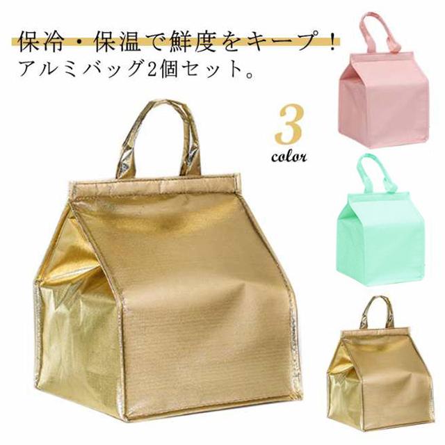 【2個セット】保冷バッグ 保温バッグ アルミバッグ ケーキ 収納袋 コンパクト シンプル クーラーボックス 弁当 折りたたみ アウトドア 買い物 スポーツ ゴルフ トート ランチバッグ 保冷 保温 送料無料