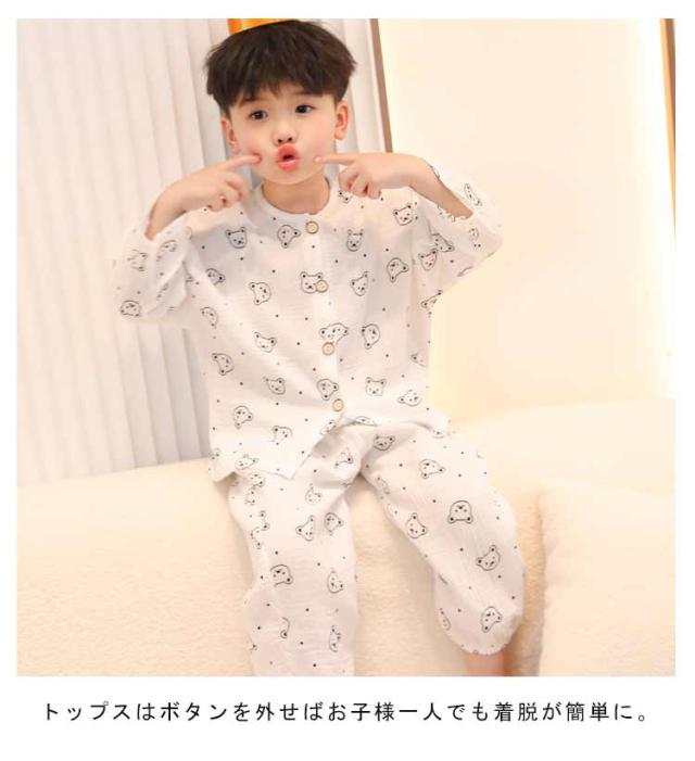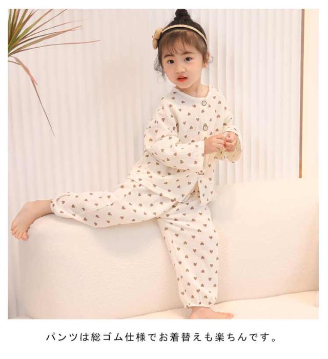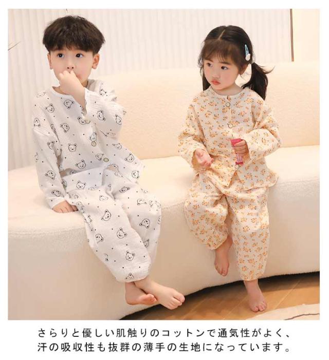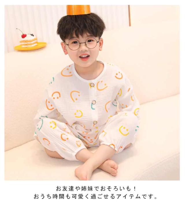 | 80-150cm!春から秋にかけて最適なルームウェア。 さらりと優しい肌触りのコットンで通気性がよく、汗の吸収性も抜群の薄手の生地になっています。 トップスはボタンを外せばお子様一人でも着脱が簡単に。 リラックスしてお家時間を過ごせるよう、締付けの少ないシルエットに。 パンツは総ゴム仕様でお着替えも楽ちんです。 通気性・吸汗性に優れて、汗をたくさんかく夏でもサラサラ。 お友達や姉妹でおそろいも!おうち時間も可愛く過ごせるアイテムです。 | |