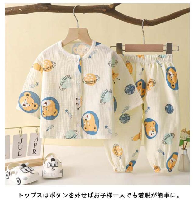 | 80-140cm!おうち服もおしゃれに♪ガーゼ素材の子供ルームウェア。 ダブルガーゼでつくられており柔らかくふんわりとした風合いがとても着やすく、心地良い睡眠を提供します。 トップスはボタンを外せばお子様一人でも着脱が簡単に。 リラックスしてお家時間を過ごせるよう、締付けの少ないシルエットに。 パンツは総ゴム仕様でお着替えも楽ちんです。 通気性・吸汗性に優れて、汗をたくさんかく夏でもサラサラ。 お友達や姉妹でおそろいも!おうち時間も可愛く過ごせるアイテムです。 | |