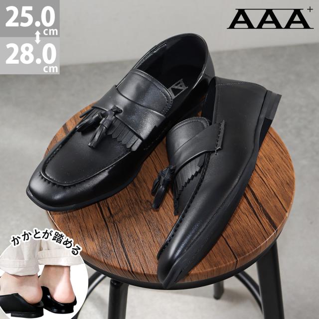 【AAA+ サンエープラス】の踵が踏めるタッセルローファー。