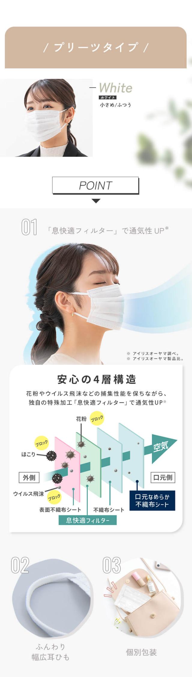【セット】マスク 不織布 プリーツ 立体 ふつう 小さめ 個包装 肌にやさしい 息快適 通気性UP やわらか耳ひも DAILY FIT MASK なめらかタッチ アイリスオーヤマ PKーDH50 RN-DH20