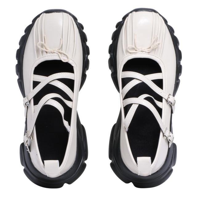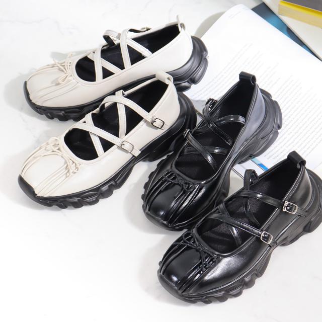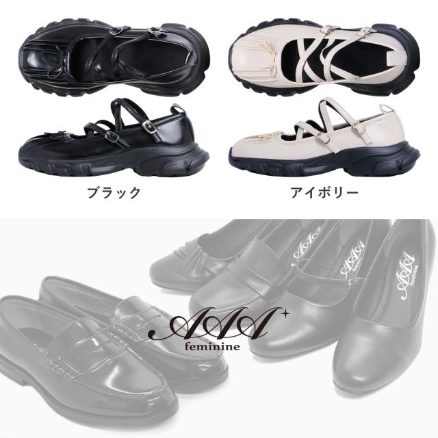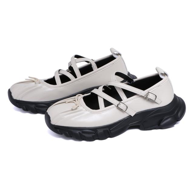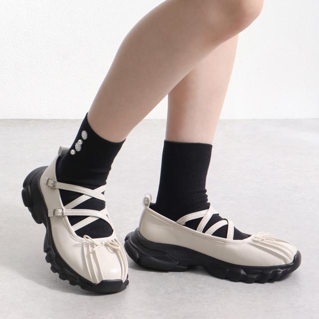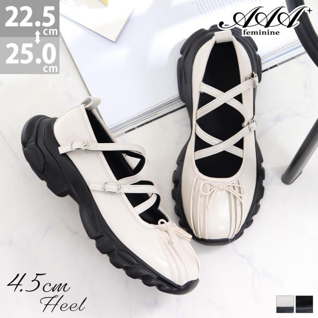 レディーススニーカー クロスストラップ リボン バレエ 4.5cmヒール ボリュームソール 軽量 No.3706 22.5-25cm AAA+ Feminine