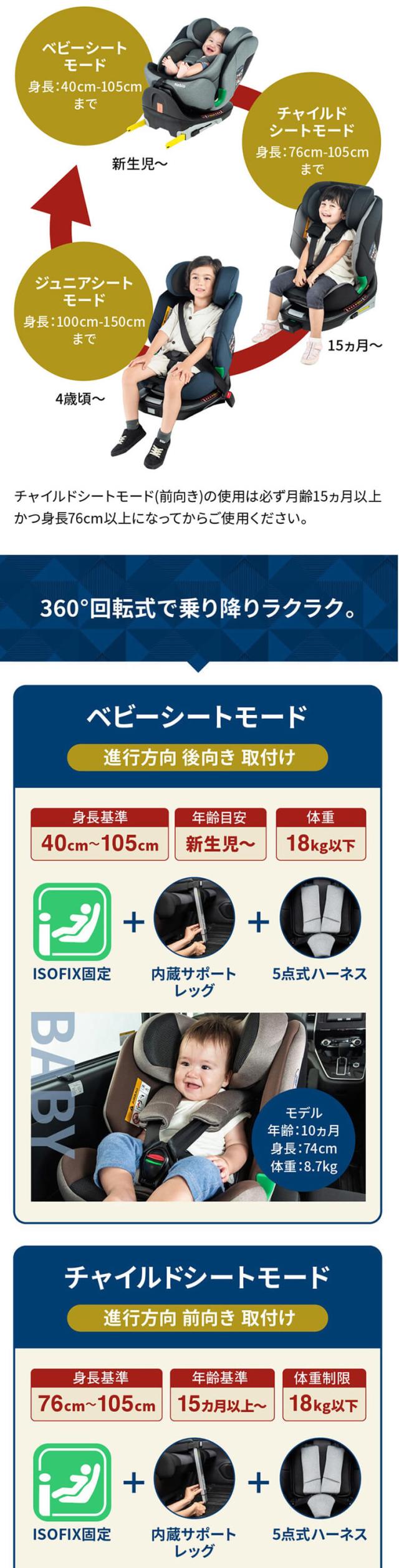 チャイルドシート ISOFIX ジュニアシート ターンピットF Turn PitF 81237 全4色 チャイルドシート 新生児対応タイプ R129新安全基準適合 ISOFIX固定 360度回転式 新生児〜12歳頃 身長40cm〜150cm インナーサポートクッション付 5段階リクライニング 送料無料