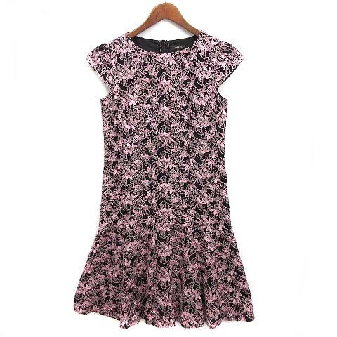 【中古】トッカ TOCCA フラワー 刺繍 エンブロイダリー フレンチスリーブ ワンピース 膝丈 ブラック ピンク 0 レディース
