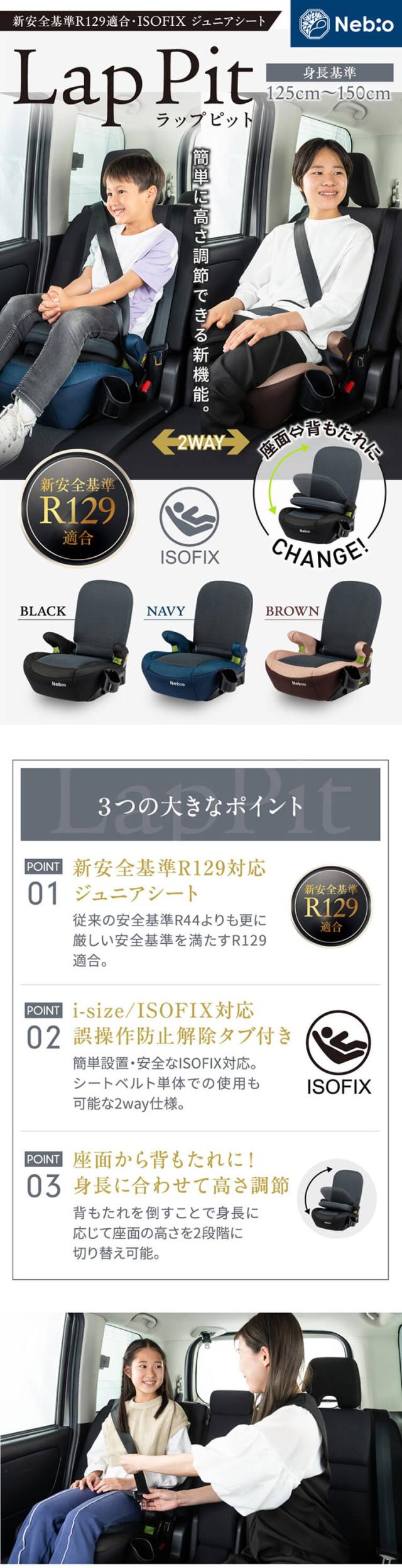 チャイルドシート ISOFIX ジュニアシート ラップピット Lap Pit 81229 全3色 チャイルドシート ジュニアシート R129新安全基準適合 ISOFIX固定 身長:125cm〜150cm ドリンクホルダー付き ISOFIX+シートベルト固定 ダブル固定 座面高さ2段階調節可能 送料無料