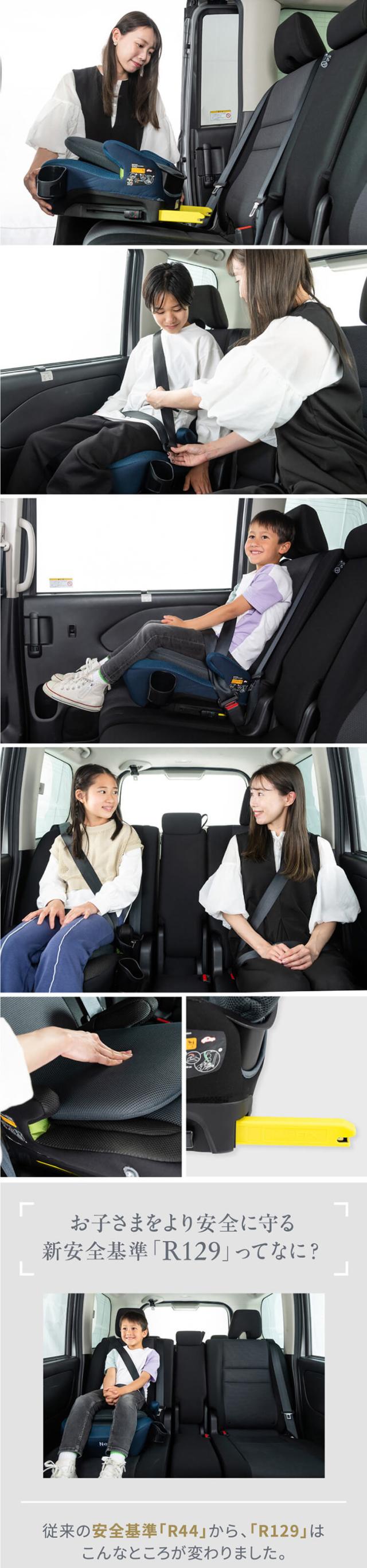 最新安全基準R129適合のISOFIX固定+シートベルト固定なのでより安全、ISOFIXなしでシートベルト固定だけでもOKです。